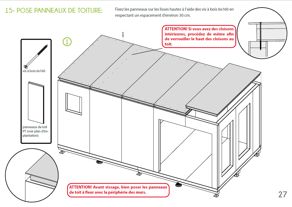- Pose des panneaux de toit et verrouillage